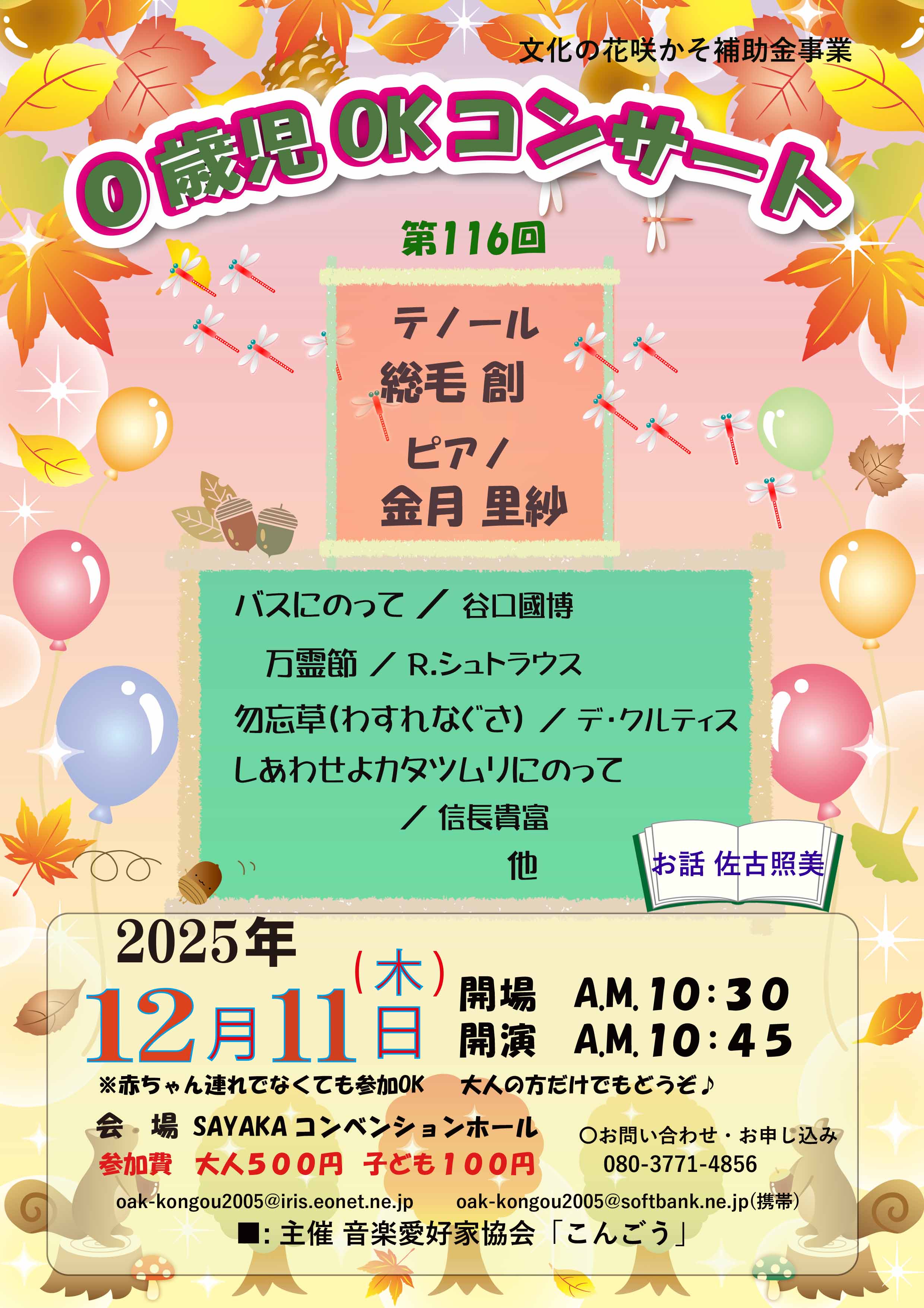 第116回0歳児OKコンサート12月11日(木)開場10:30 開演10:45 会場:SAYAKAホール・コンベンションホール 参加費:大人500円 子ども100円 ......more