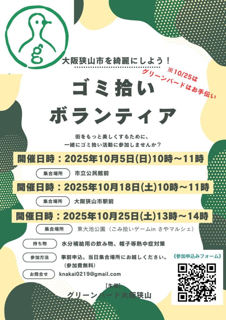 グリーンバード大阪狭山 ゴミ拾いボランティア募集