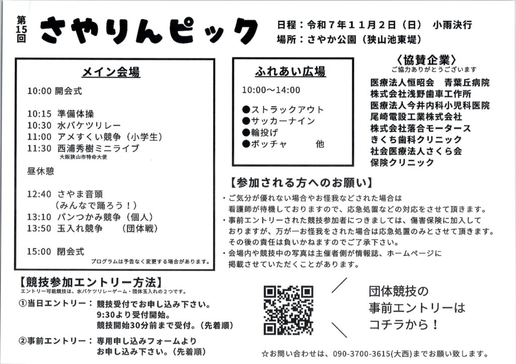 11月2日(日) 10:00~15:00 会場:さやか公園(狭山池東堤) ※小雨決行 参加無料