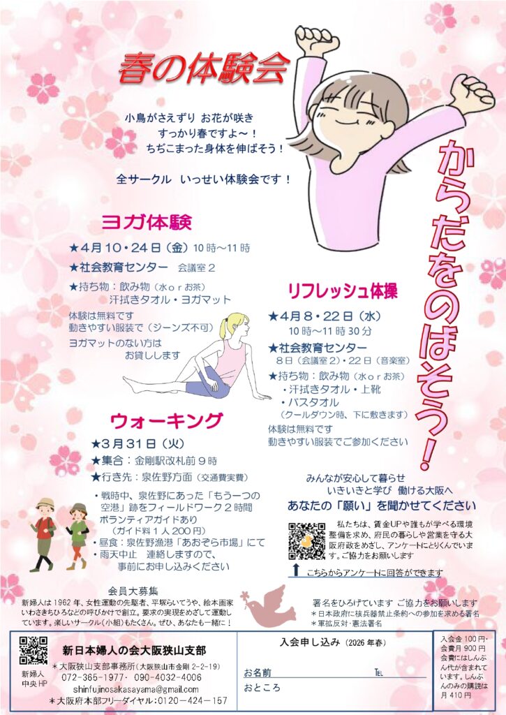 新日本婦人の会大阪狭山支部 春の体験会
