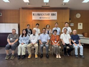 第21期まちづくり大学がスタートしました。今期は15名の参加で、これから5か月間“大阪狭山市づくり”のためにたくさんのことを学んで活躍されることを期待しています。